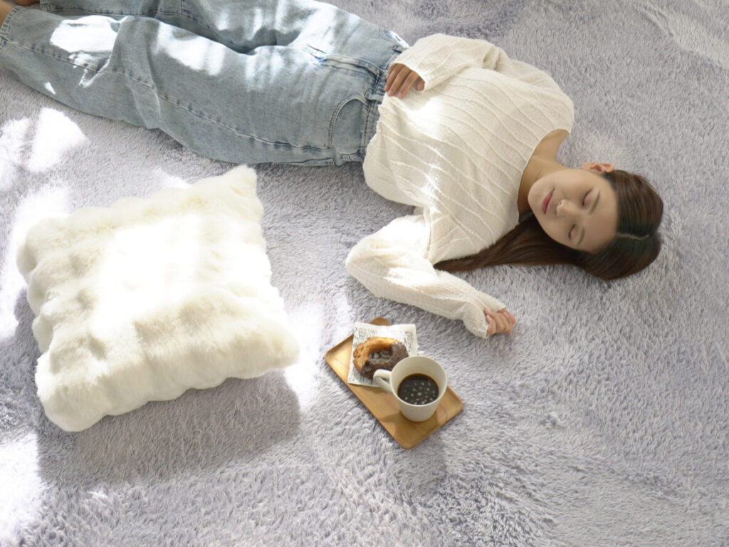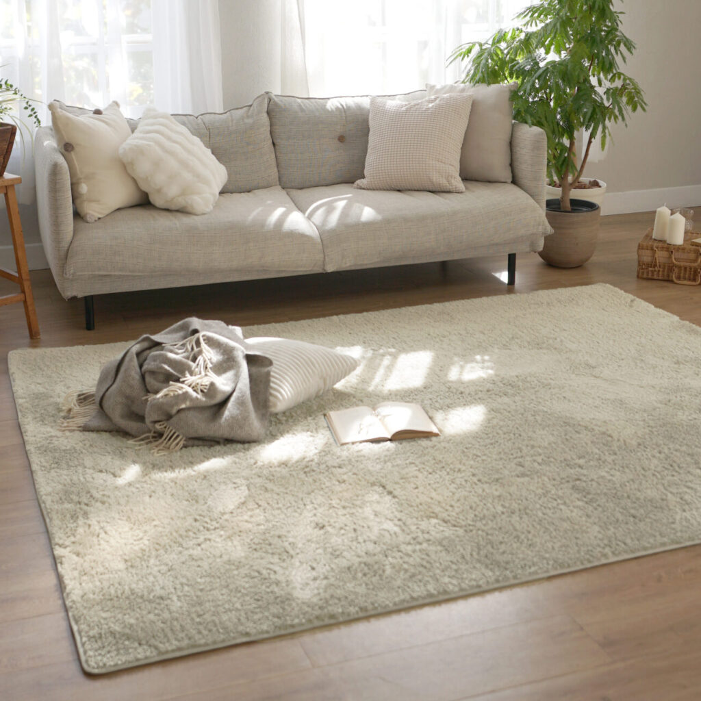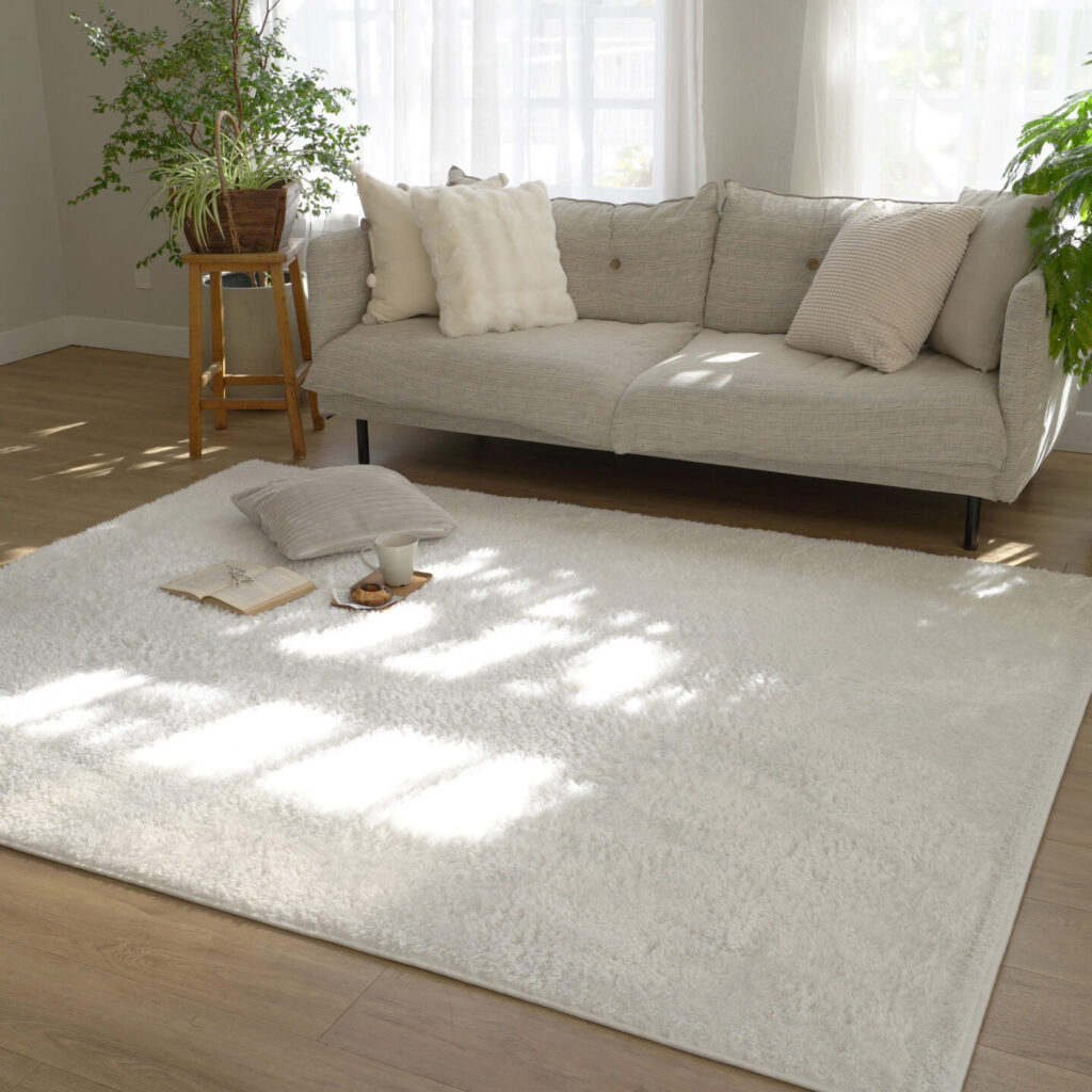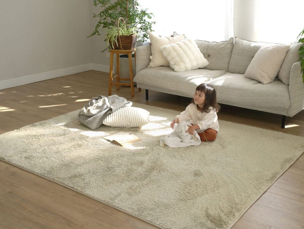 思わず頬ずりしたくなる、柔らかくてなめらかなタッチ感。1枚敷くだけでお部屋にふわふわの温もりと高級感をプラス。
